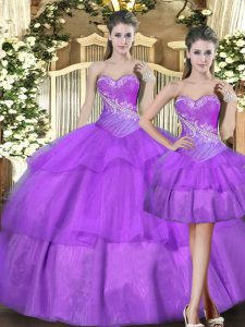 Pretty Sleeveless Beading and Ruffled Layers Lace Up Quinceanera Dress