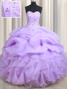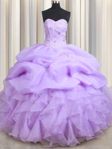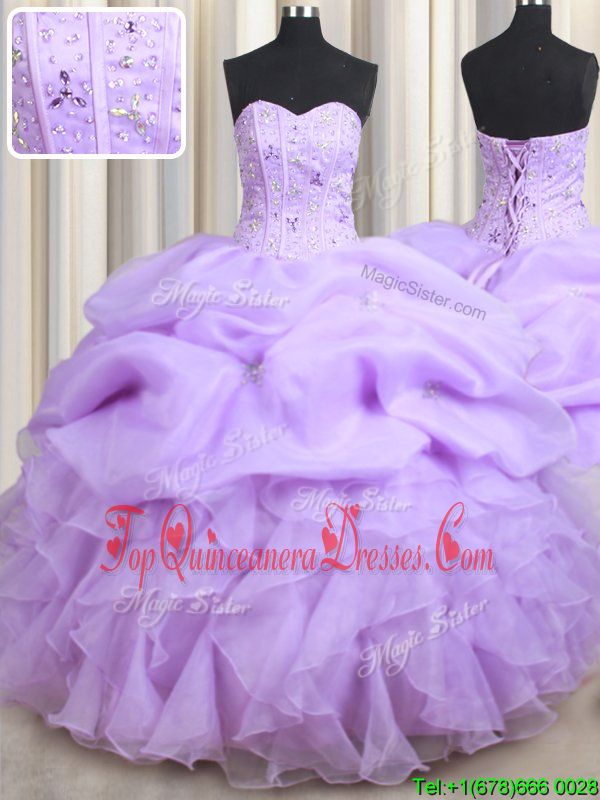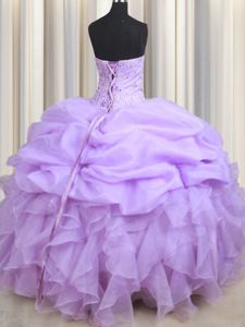 Pretty Sleeveless Lace Up Floor Length Beading and Ruffles and Pick Ups Sweet 16 Dresses