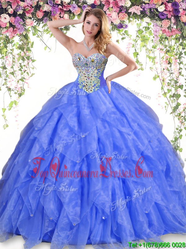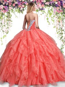 Pretty Sleeveless Lace Up Floor Length Beading and Ruffles Ball Gown Prom Dress