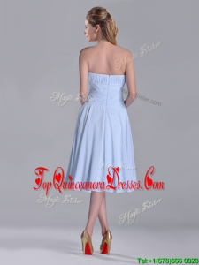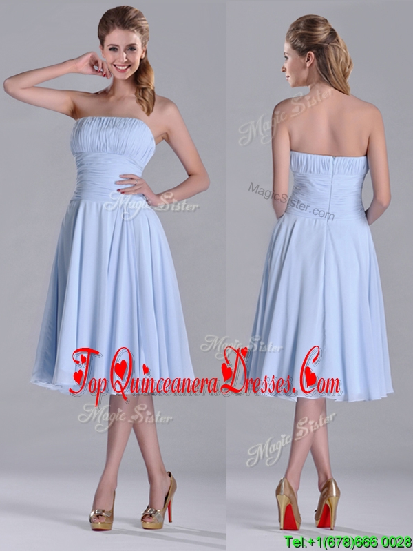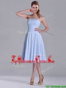 Pretty Strapless Chiffon Ruched Lavender Dama Dress in Tea Length