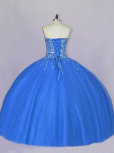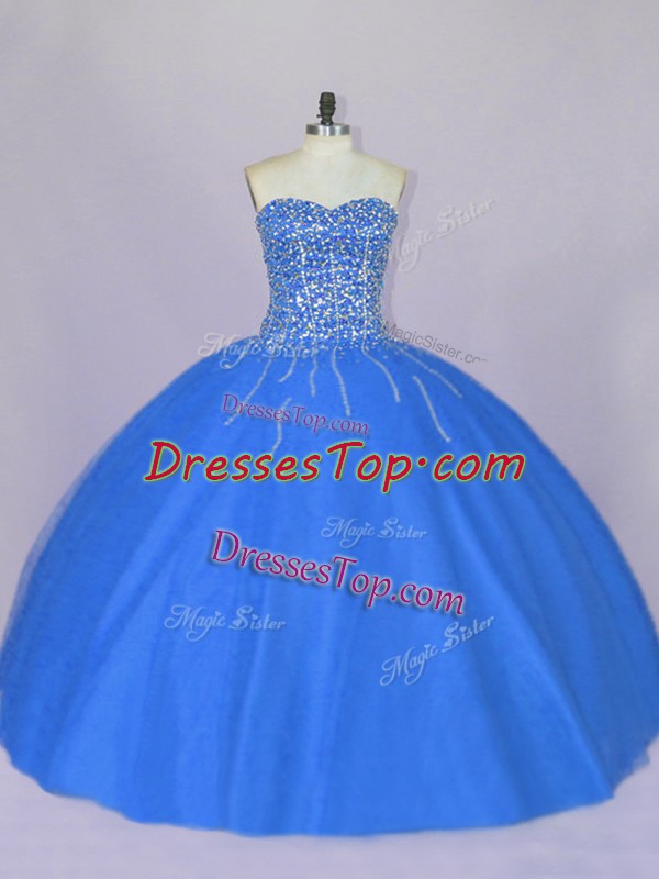 Pretty Sweetheart Sleeveless Lace Up 15 Quinceanera Dress Blue Tulle