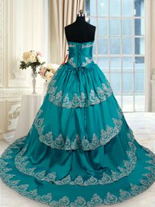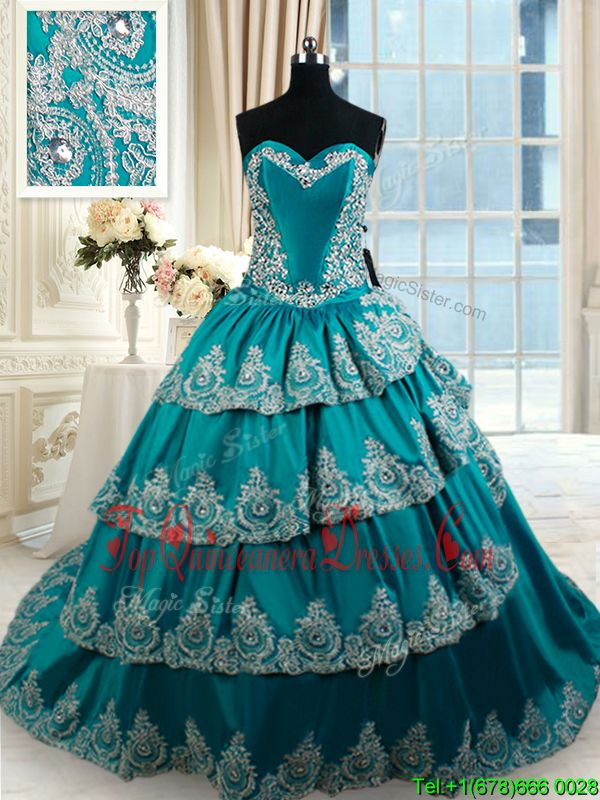 Pretty Teal Ball Gowns Sweetheart Sleeveless Taffeta Floor Length Lace Up Beading and Embroidery and Ruffled Layers Sweet 16 Dresses