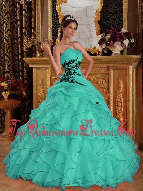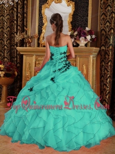 Pretty Turquoise Ball Gown Sweetheart Floor-length Organza Appliques Quinceanera Dress