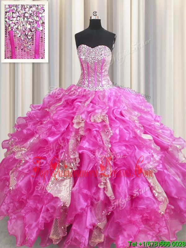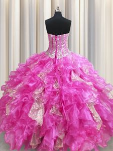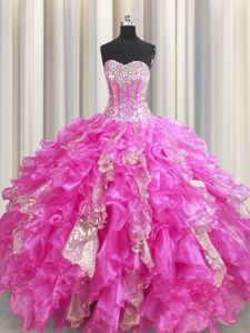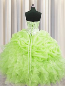 Pretty Visible Boning Sleeveless Organza Floor Length Lace Up Sweet 16 Quinceanera Dress in Yellow Green for with Beading and Ruffles and Pick Ups