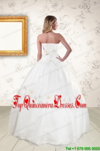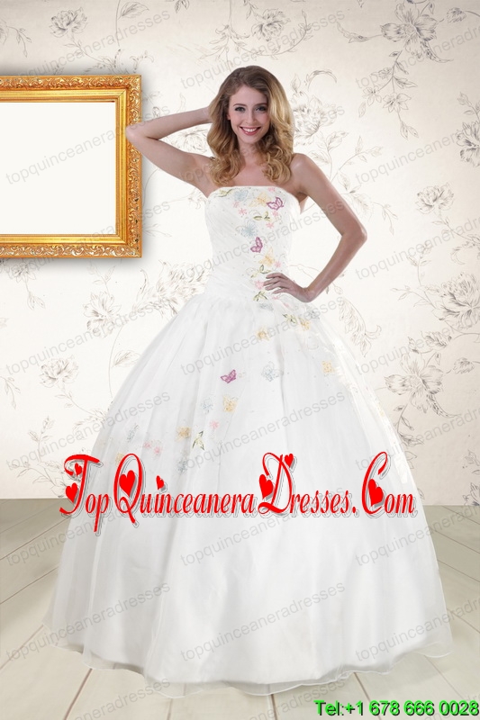 Pretty White Strapless Embroidery 2015 Sweet 16 Dresses
