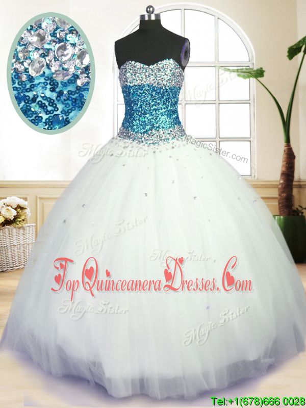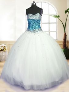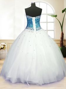 Pretty White Tulle Lace Up Quinceanera Dress Sleeveless Floor Length Beading