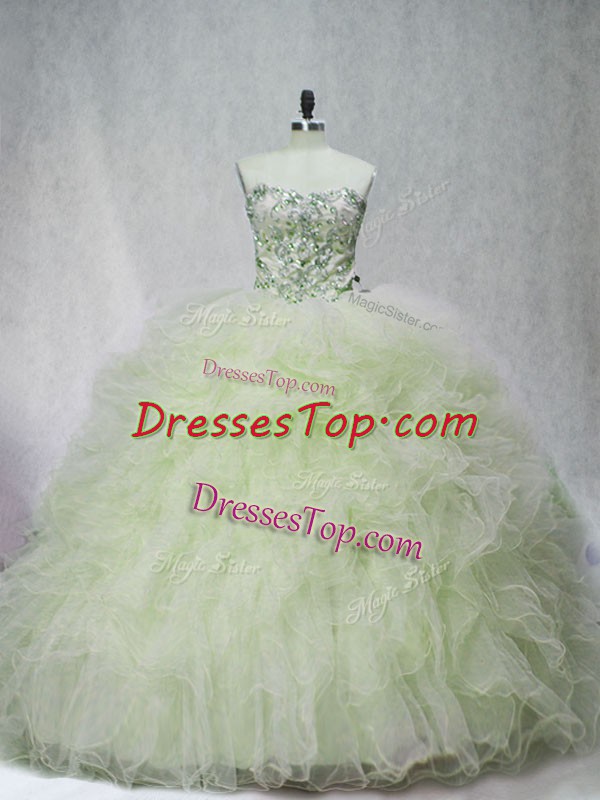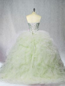 Pretty Yellow Green Ball Gowns Sweetheart Sleeveless Tulle Brush Train Lace Up Beading 15th Birthday Dress