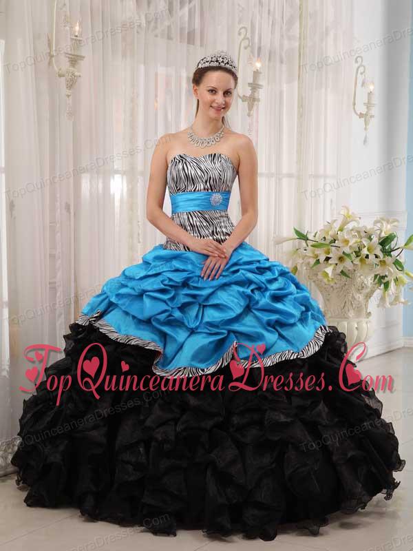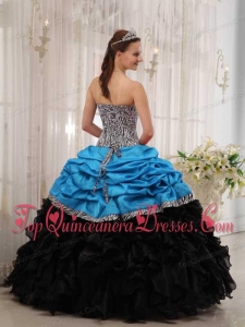 Print Brand New Aqua and Black Ball Gown Sweetheart Floor-length Quinceanera Dress