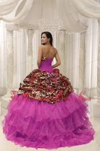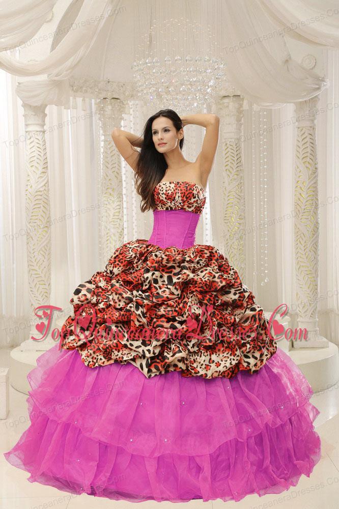 Print Organza Leopard Quinceanera Dress With Beaded Decorate