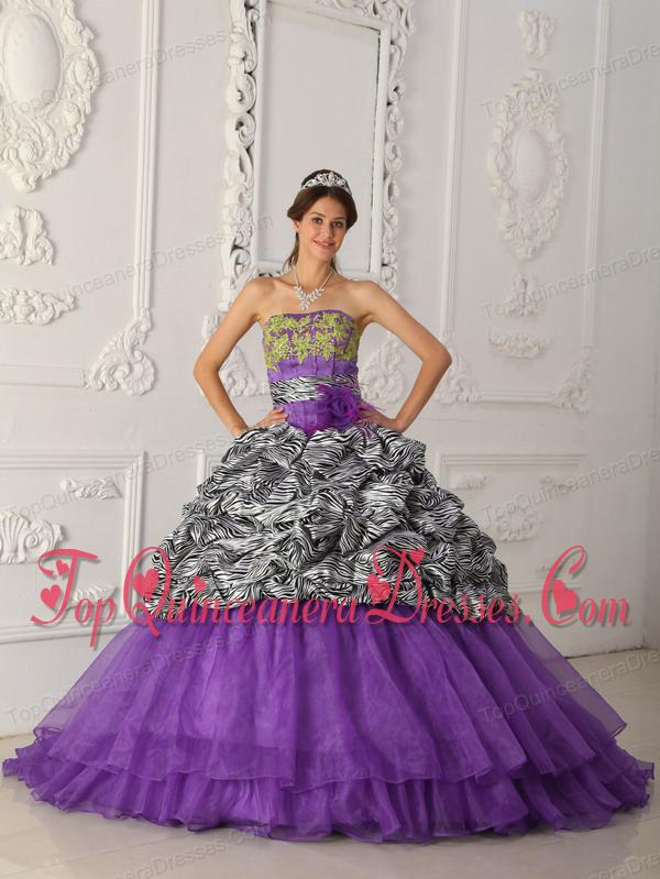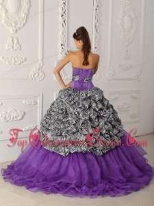 Print Purple Ball Gown Strapless Chapel Train Zebra and Organza Quinceanera Dress