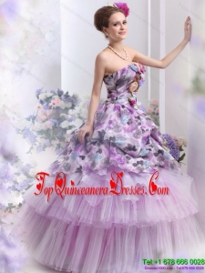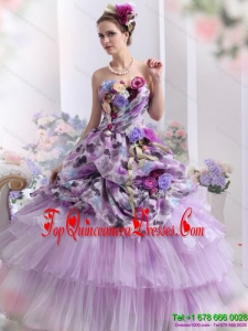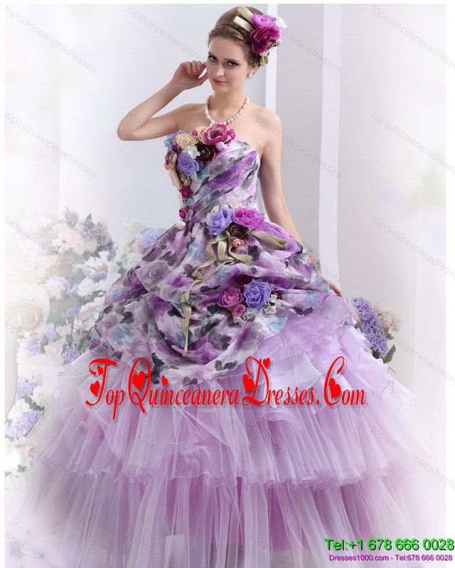 Puffy 2015 Multi Color Sweet Sixteen Dresses with Hand Made Flowers and Ruffles