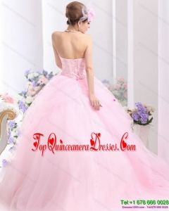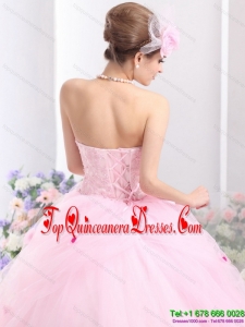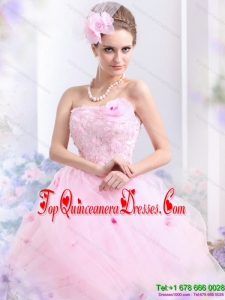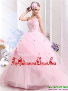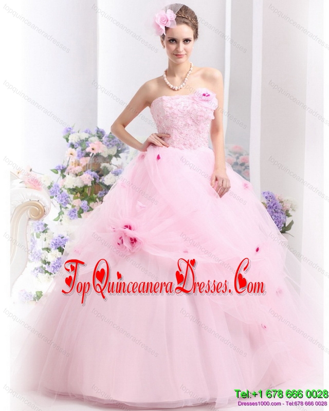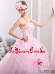 Puffy Baby Pink Sweet Sixteen Dresses with Hand Made Flowers