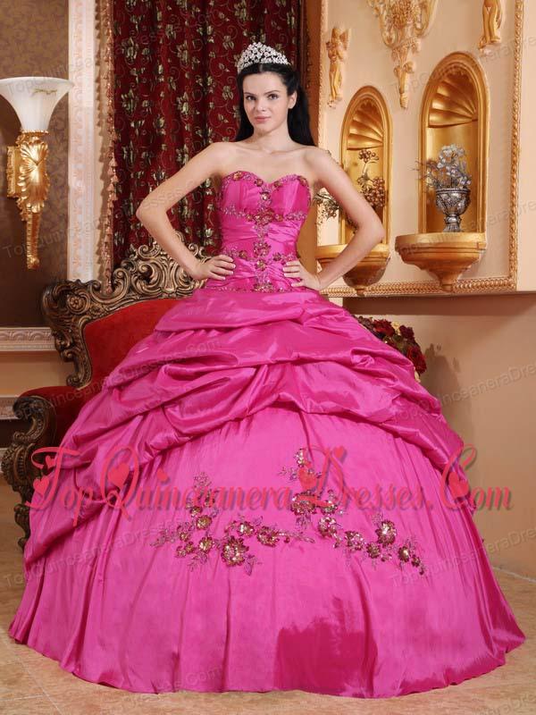 Puffy Ball Gown Floor-length Sweetheart Appliques Taffeta Sweet 16 Gowns