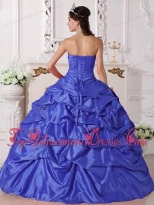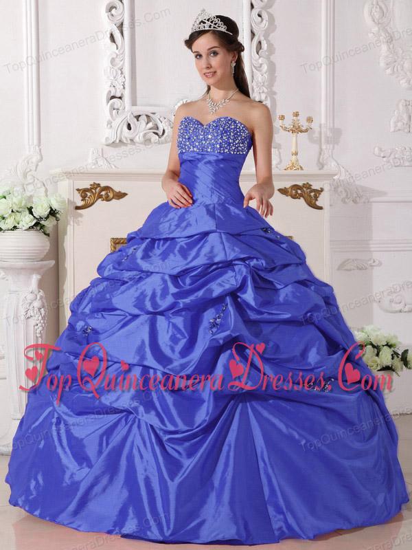 Puffy Blue Ball Gown Sweetheart Floor-length Taffeta Beading Sweet 16 Gowns