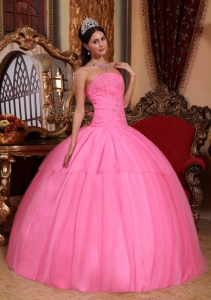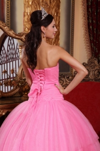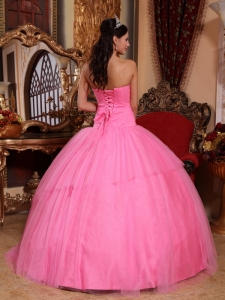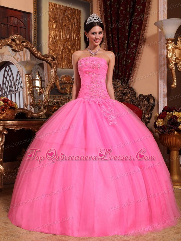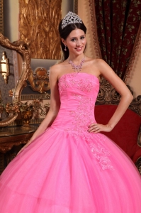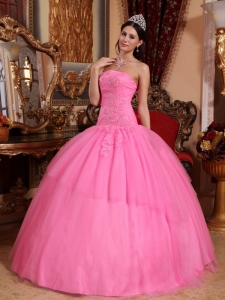 Puffy Dropped Waist Rose Pink Quinceanera Dress Appliques