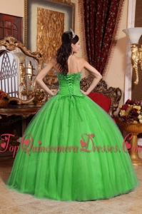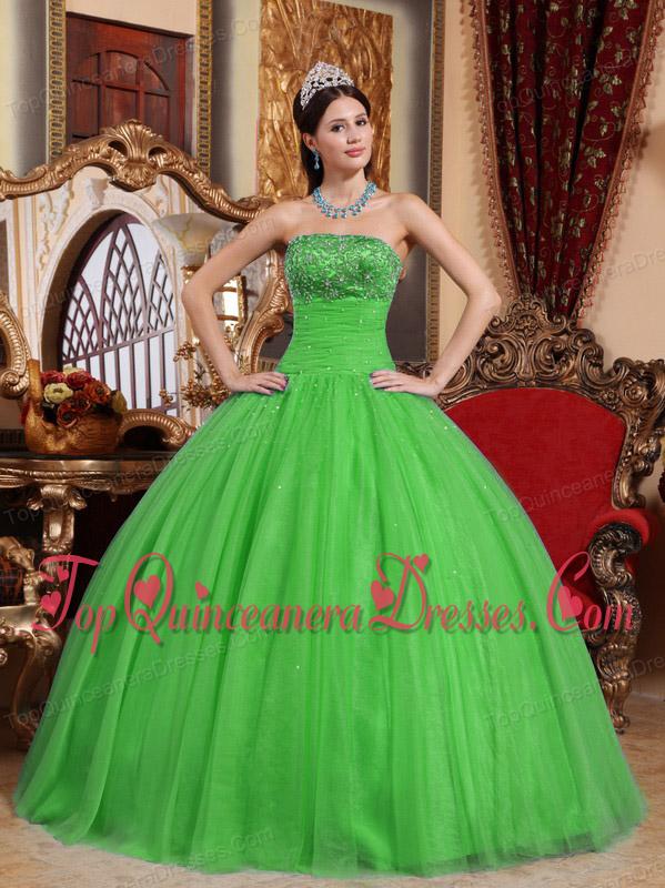 Puffy Green Ball Gown Strapless Floor-length Tulle Embroidery with Beading Sweet 16 Gowns