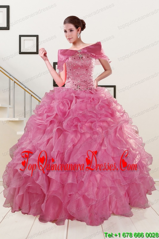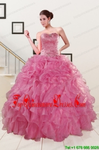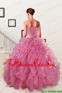 Puffy Sweetheart Pink Quinceanera Dresses with Beading