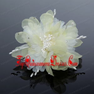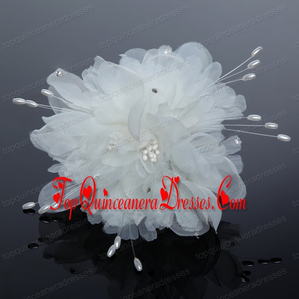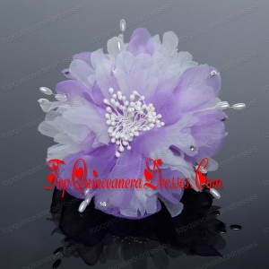 Pure Tulle Lilac Beautiful Imitation Pearls Hair Flower with Rhinestone