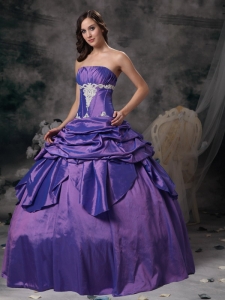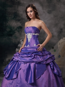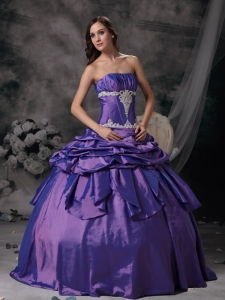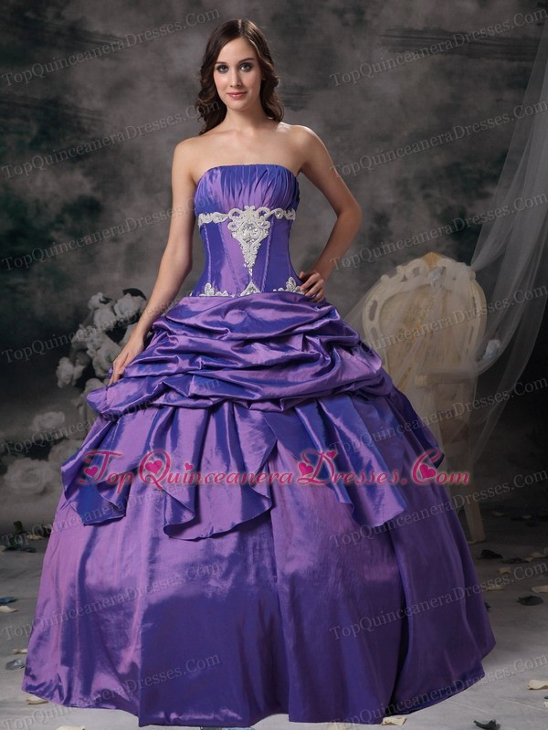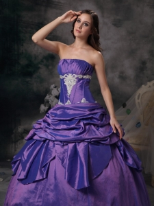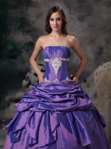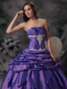 Purple 2012 Strapless Floor-length Applique Quinceanera Dress