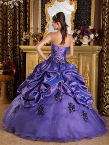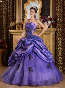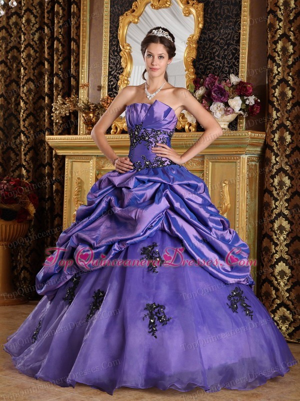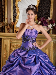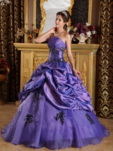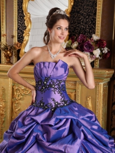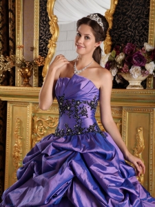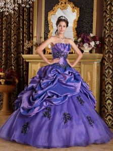 Purple A-Line Quinceanera Dress Appliques and Pick-ups