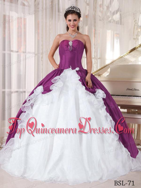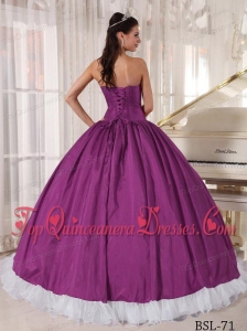 Purple and White Ball Gown Sweetheart Organza and Taffeta Beading Quinceanera Dress