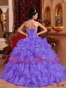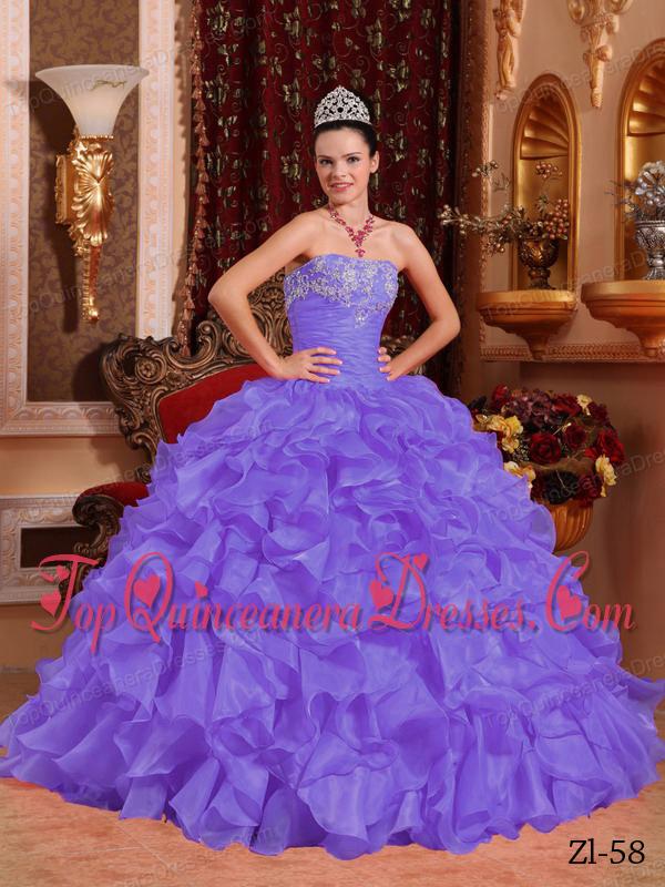 Purple Ball Gown Strapless Floor-length Organza Beading and Appliques Quinceanera Dress