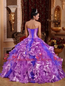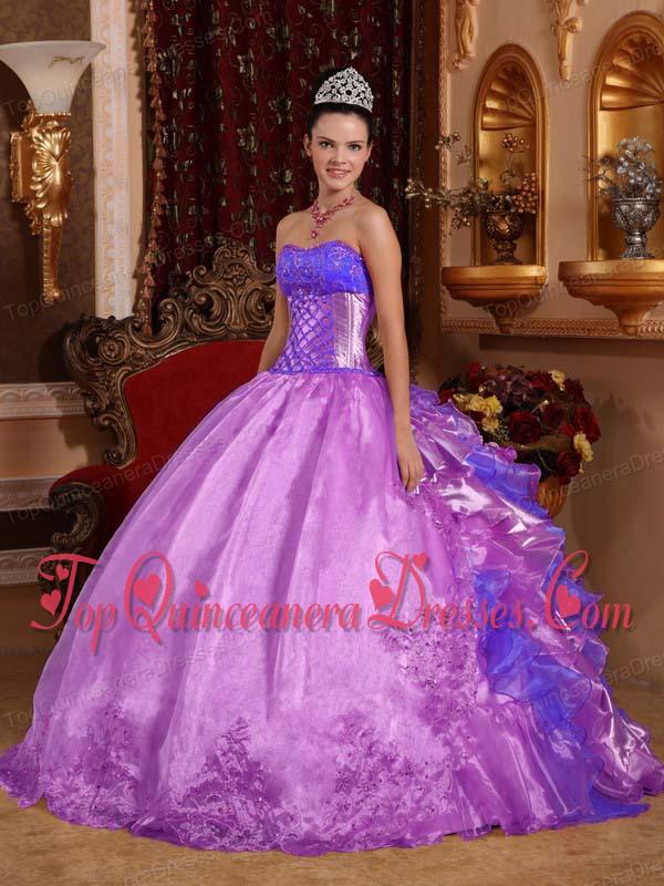 Purple Ball Gown Strapless Floor-length Organza Embroidery Puffy Sweet 16 Gowns
