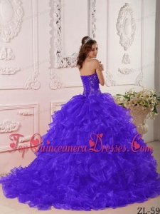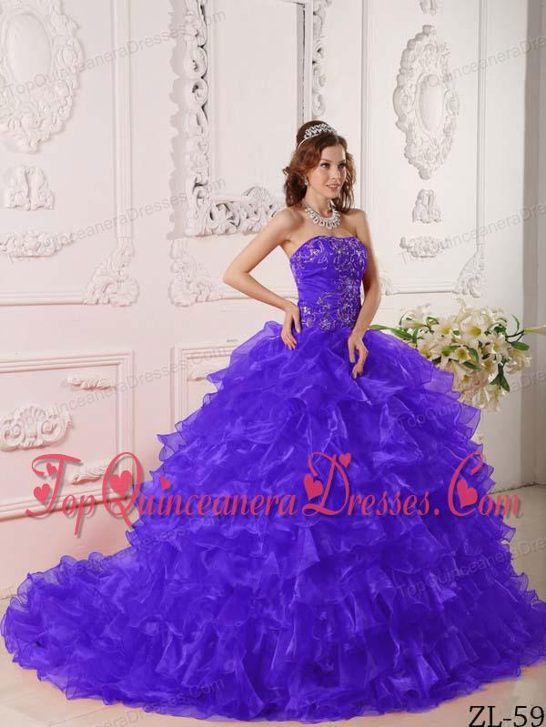 Purple Ball Gown Strapless Floor-length Organza Ruffles And Embroidery Quinceanera Dress
