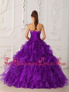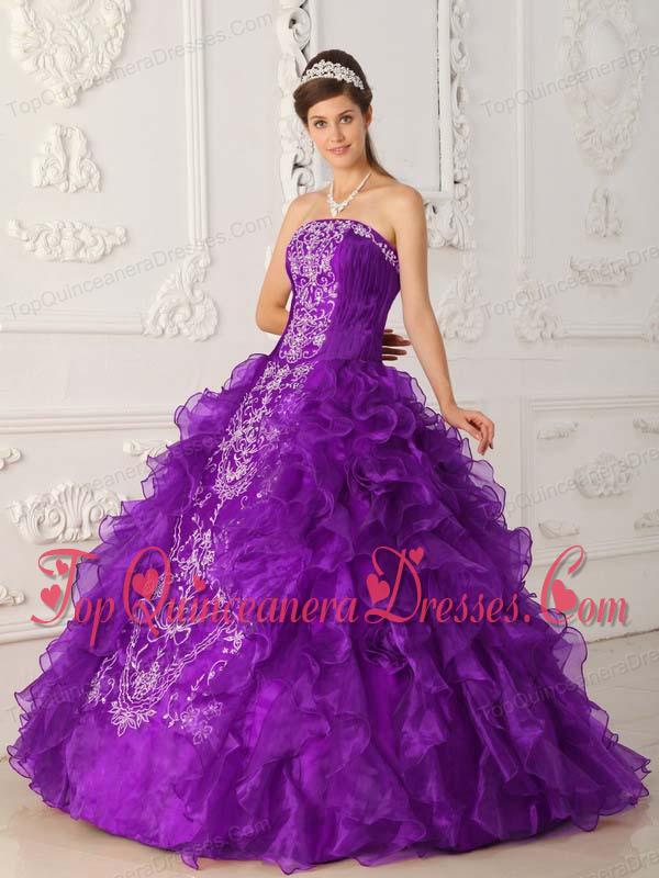 Purple Ball Gown Strapless Floor-length Satin and Organza Embroidery Perfect Quinceanera Dress