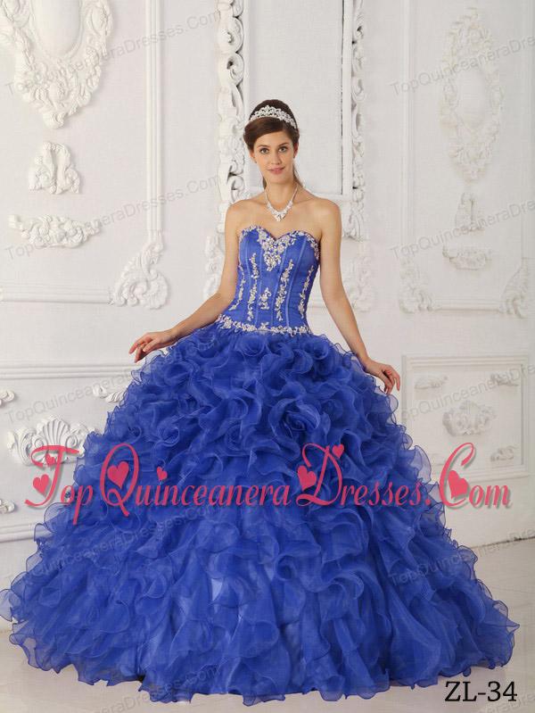 Purple Ball Gown Sweetheart Floor-length Satin and Organza Appliques Vestidos de Quinceanera