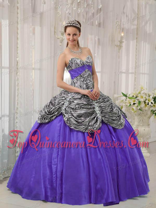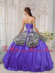 Purple Ball Gown Sweetheart Floor-length Taffeta and Zebra or Leopard Ruffles Fashionable Quinceanera Dress