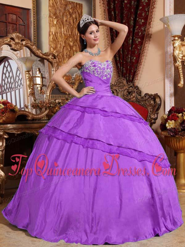 Purple Ball Gown Sweetheart Floor-length Taffeta Appliques Discount Quinceanera Dress