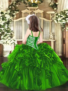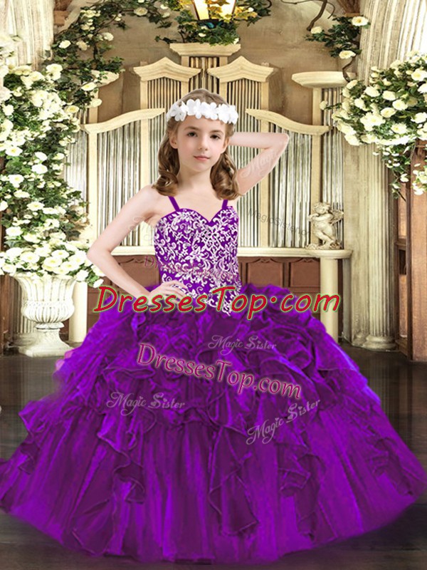 Purple Ball Gowns Organza Straps Sleeveless Beading and Ruffles Floor Length Lace Up Pageant Dresses