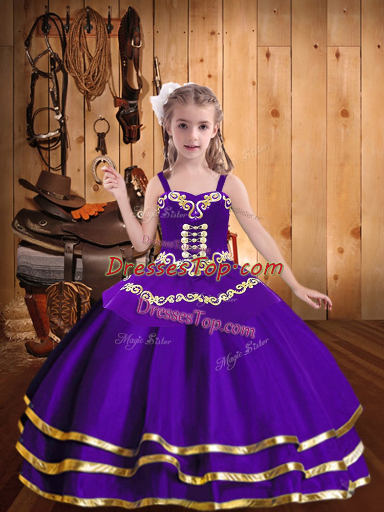 Purple Ball Gowns Organza Straps Sleeveless Embroidery and Ruffled Layers Floor Length Lace Up Evening Gowns