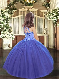 Purple Child Pageant Dress Party and Sweet 16 and Wedding Party with Appliques Halter Top Sleeveless Lace Up