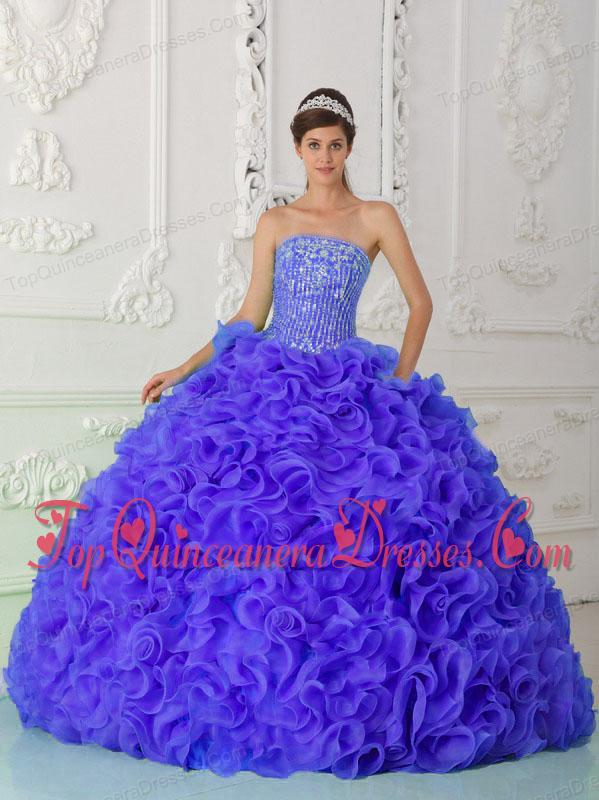 Purple Classic Quinceanera Dresses Ball Gown Strapless Organza Beading