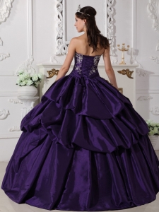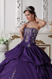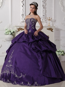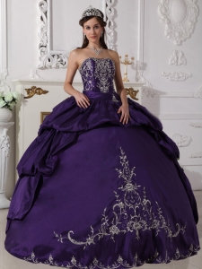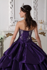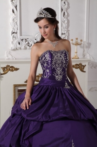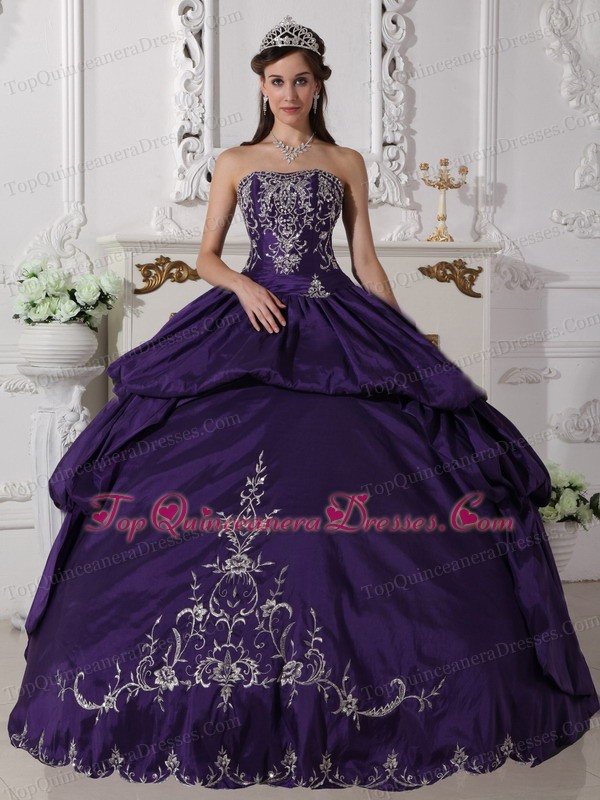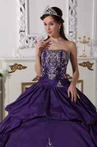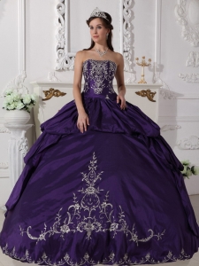 Purple Embroidery Ball Gown Quinceanera Dress Strapless