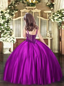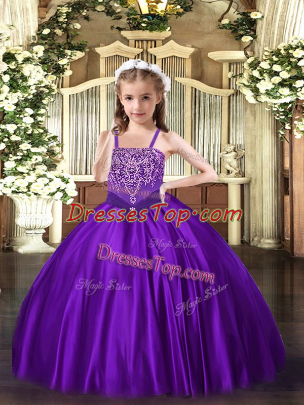 Purple Lace Up Custom Made Pageant Dress Beading Sleeveless Floor Length
