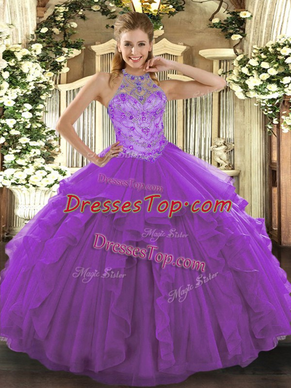 Purple Lace Up Vestidos de Quinceanera Beading and Embroidery Sleeveless Floor Length