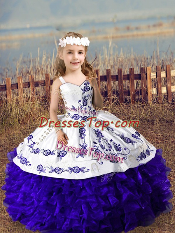 Purple Little Girl Pageant Gowns Wedding Party with Embroidery and Ruffles Straps Sleeveless Lace Up