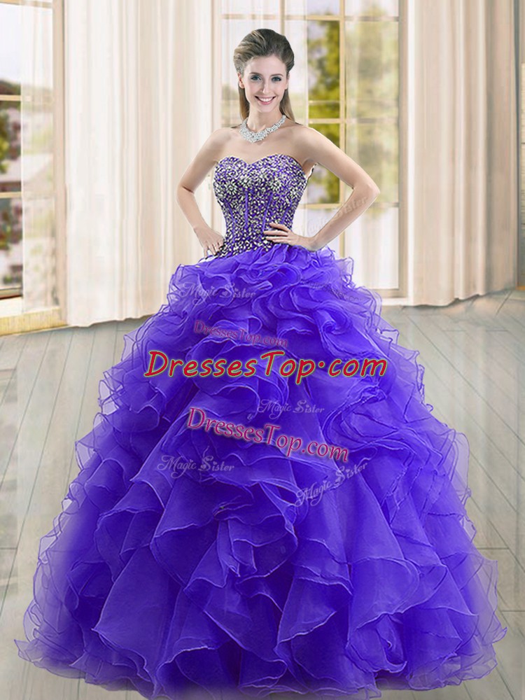 Purple Quinceanera Dress Military Ball and Sweet 16 and Quinceanera with Beading and Ruffles Sweetheart Sleeveless Lace Up