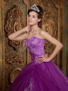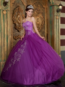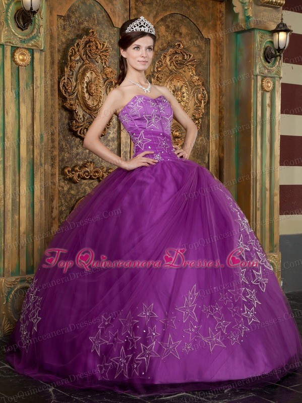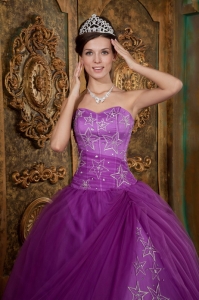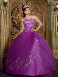 Purple Quinceanera Dress Sweetheart Appliques Tulle Ball Gown