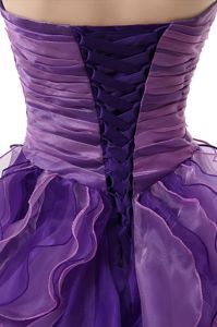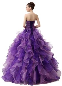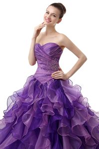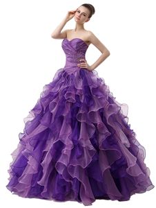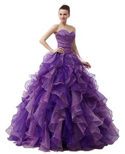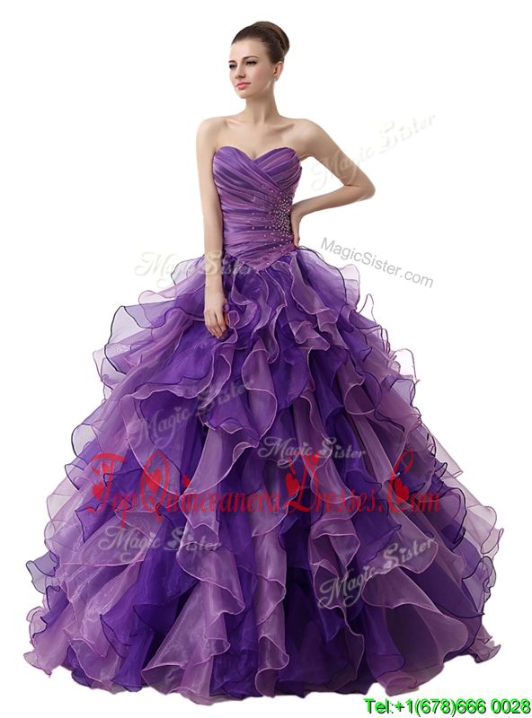Purple Sleeveless Beading and Ruffles and Ruching Floor Length 15th Birthday Dress