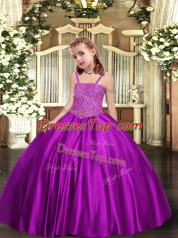 Purple Sleeveless Floor Length Beading Lace Up Pageant Dress Womens