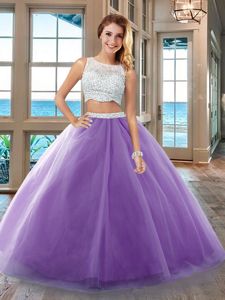 Purple Sleeveless Floor Length Beading Side Zipper 15th Birthday Dress