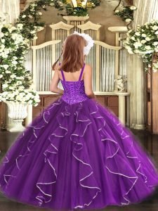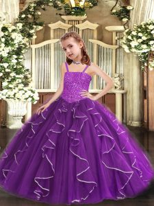 Purple Sleeveless Organza Lace Up Little Girls Pageant Gowns for Party and Sweet 16 and Quinceanera and Wedding Party