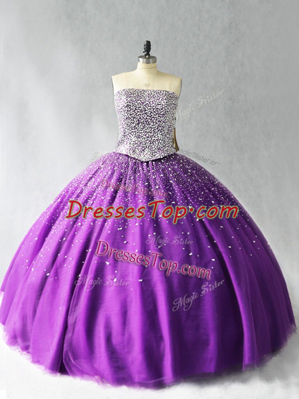 Purple Sleeveless Organza Lace Up Sweet 16 Dresses for Sweet 16 and Quinceanera