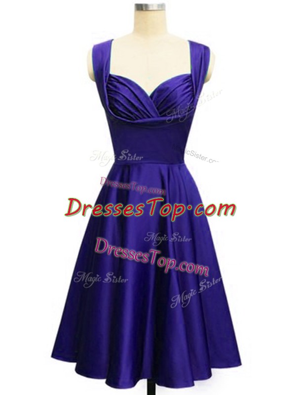 Purple Sleeveless Ruching Knee Length Dama Dress