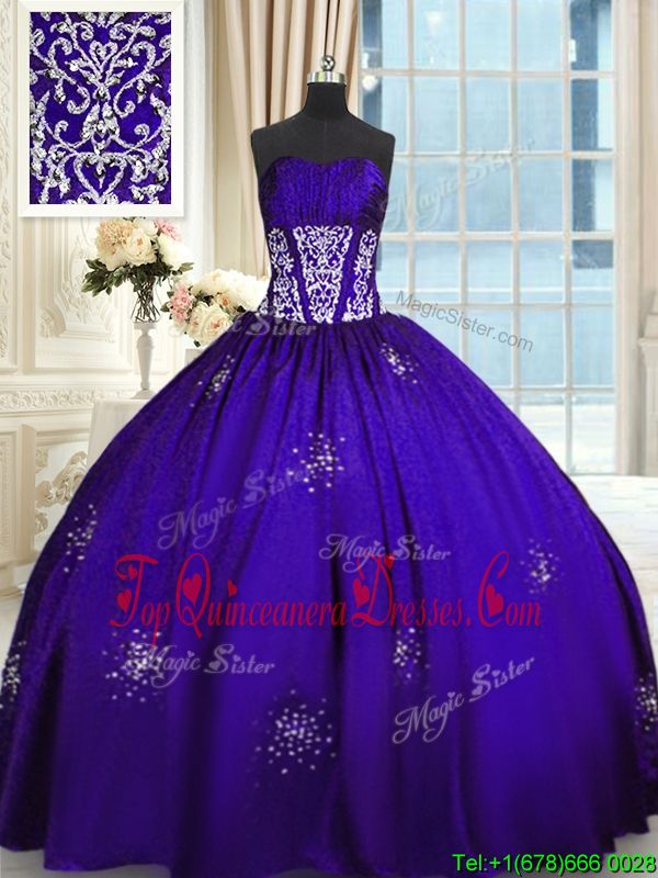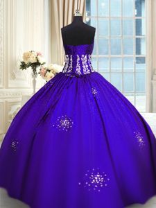 Purple Sleeveless Taffeta Lace Up Vestidos de Quinceanera for Military Ball and Sweet 16 and Quinceanera
