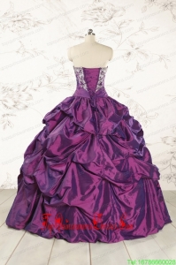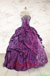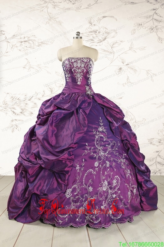 Purple Strapless 2015 Quinceanera Dresses with Embroidery